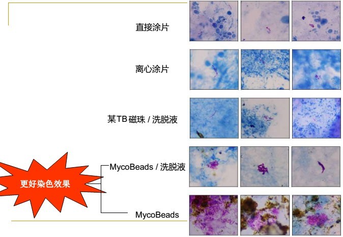 1.MycoBeads分離后的結核分枝桿菌具有更好的染色效果--比傳統分離方法或相關產品比較