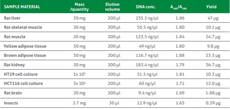 典型樣本的基因組DNA產(chǎn)量如下: