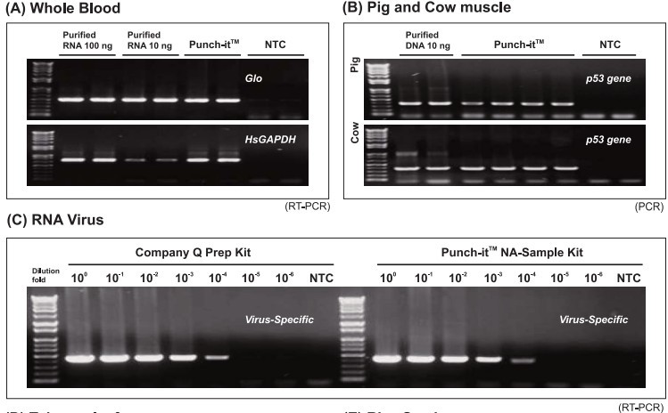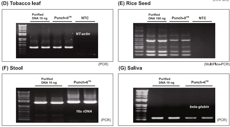 Punch-it對(duì)動(dòng)植物組織,全血,微生物均有良好的分離效果,得到的總核酸(DNA/RNA)產(chǎn)物,可以得到很好用于后續(xù)的PCR實(shí)驗(yàn)。