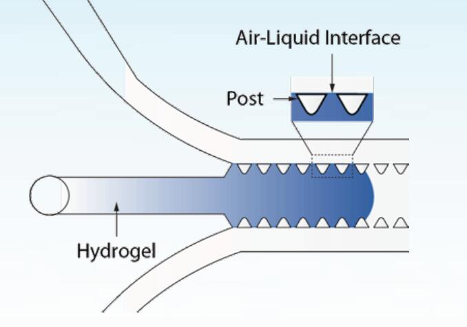 水凝膠貫穿在整個AIM芯片的間隙中,流體及化學物濃度梯度都可以被控制和調節。