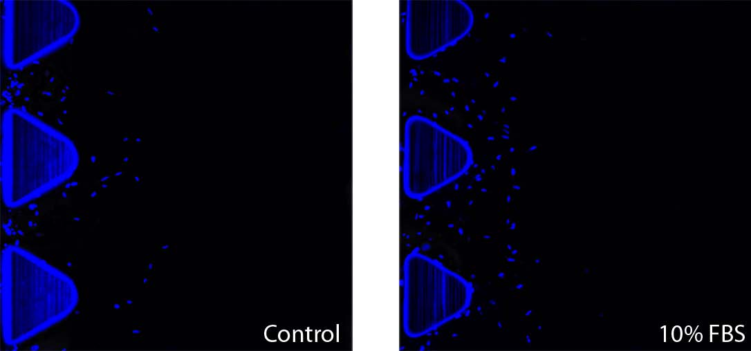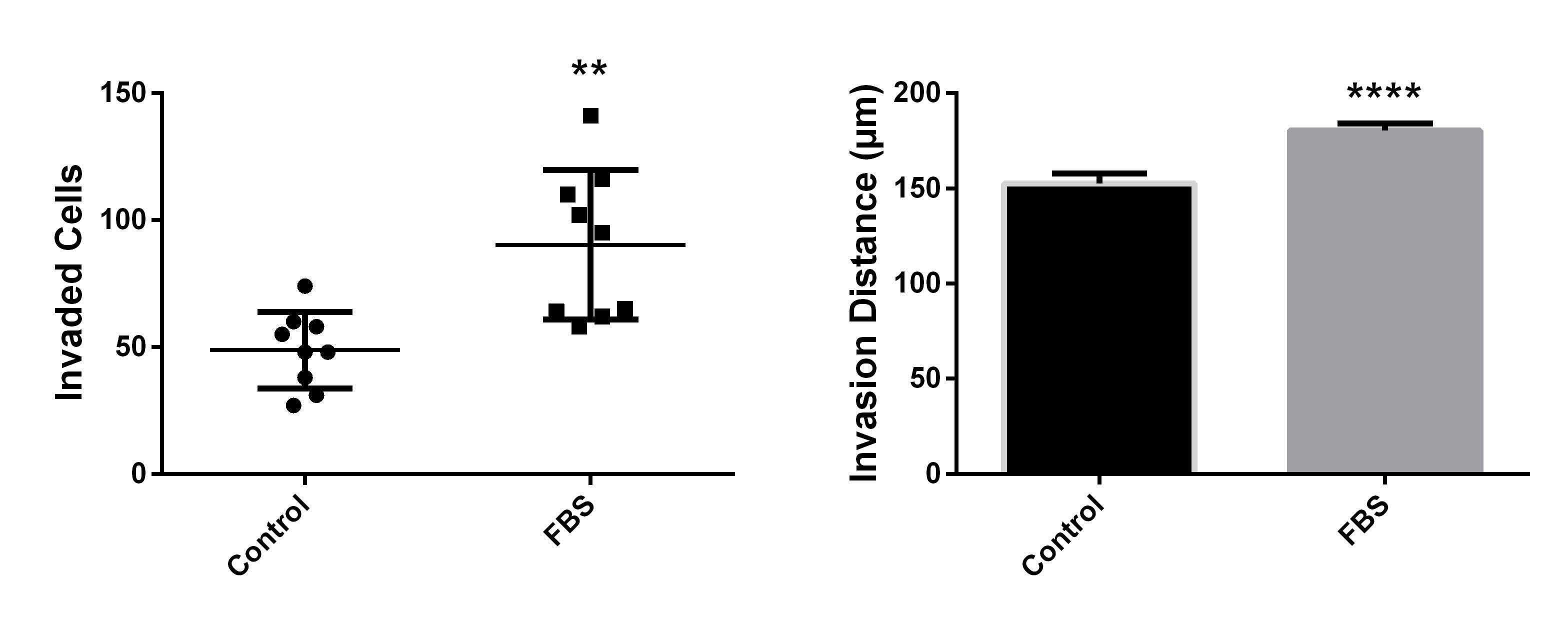 注:入侵細胞的數量可以很簡便地通過計算選定區域的核數來確定。細胞遷移速度可以通過確定細胞在給定時間的遷移距離進而很容易地被量化。