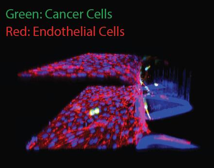 (2)內滲:腫瘤細胞通過內滲轉移進入循環系統是癌擴散至關重要的一步。AIM芯片可以在接近于腫瘤微環境的情況下創建內皮單層,然后就此作為癌癥細胞內滲的模型。